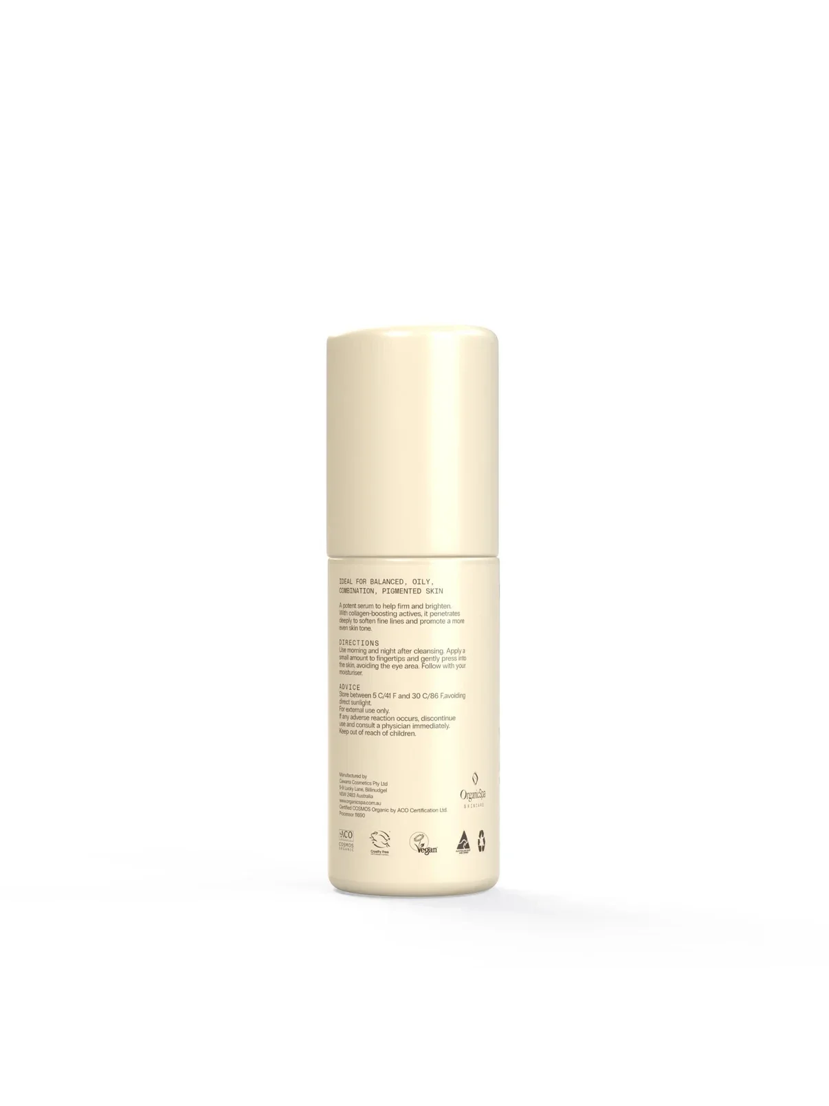 Het toevoegen van een hoge concentratie krachtige vitamine C, helpt de huid verhelderen en stimuleert een egale huid door het verminderen van pigment- en ouderdomsvlekken. Het herstellend serum dringt diep in de huid om de collageenproductie te stimuleren, jne lijntjes te verminderen en de huid meer te doen stralen.